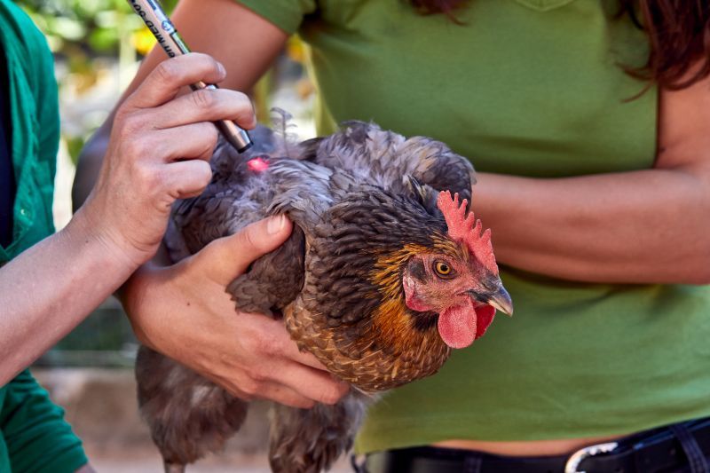 Kaltlichlaserbehandlung eines Huhnes / Foto: Sarah Frauenholzer