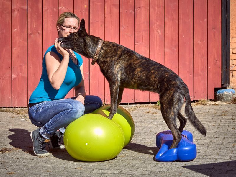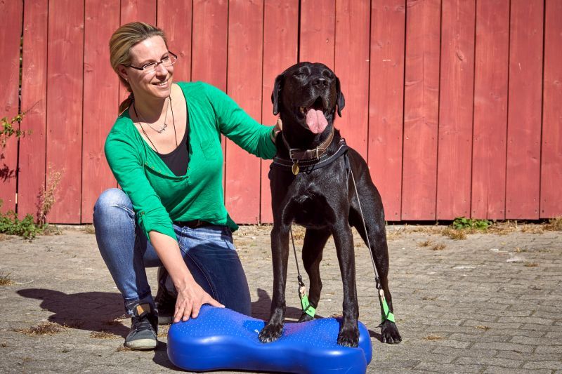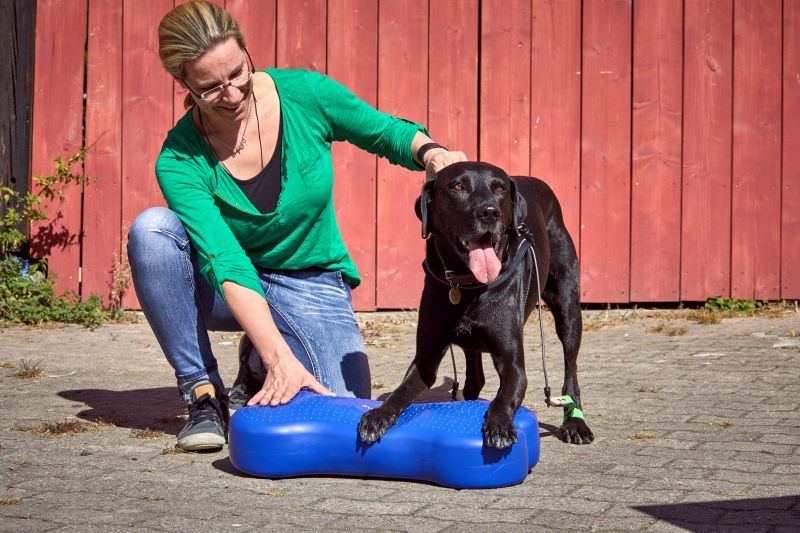 Aktive Bewegungstherapie Hund, Balanceknochen und Peanutball / Foto: Sarah Frauenholzer