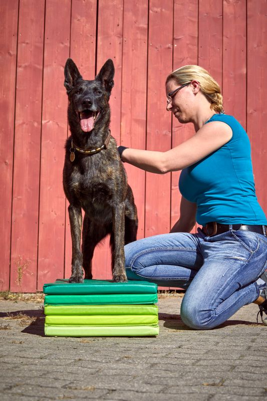 Aktive Bewegungstherapie Hund, Gewöhnung Targettraining - Vorbereitung für Balancetraining / Foto: Sarah Frauenholzer