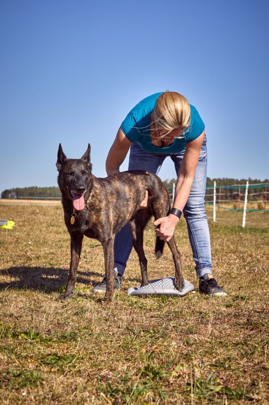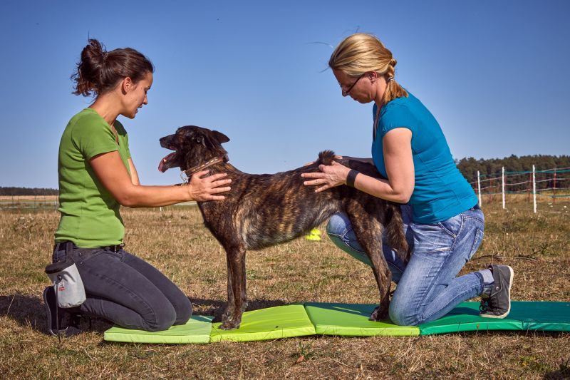 Aktive Bewegungstherapie Hund, Balanceknochen und Expandertraining / Foto: Sarah Frauenholzer