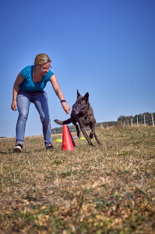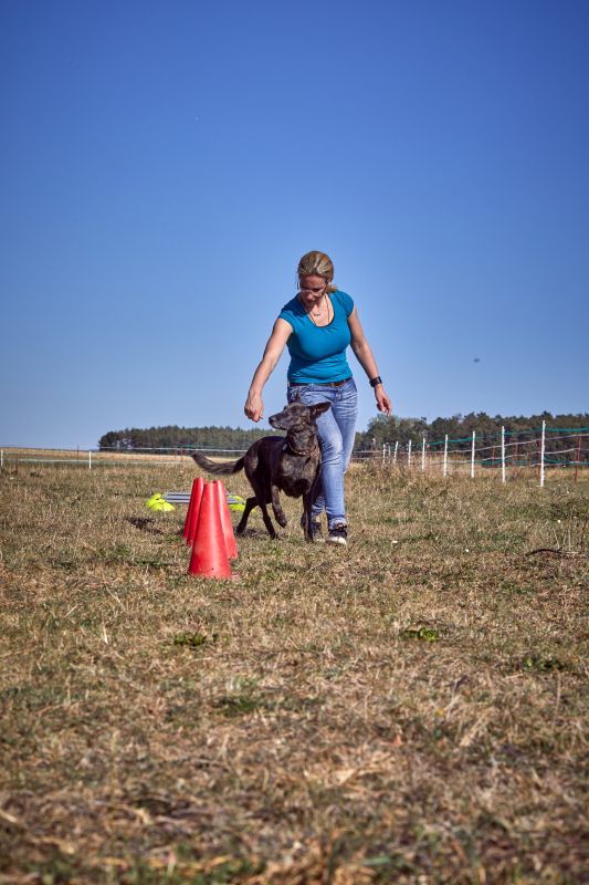 Aktive Bewegungstherapie Hund, Slalom um Pylonen / Foto: Sarah Frauenholzer