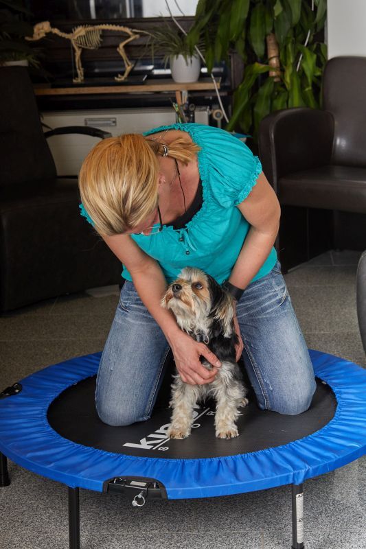 Bewegungstherapie eines Hundes auf dem Trampolin / Foto: Sarah Frauenholzer
